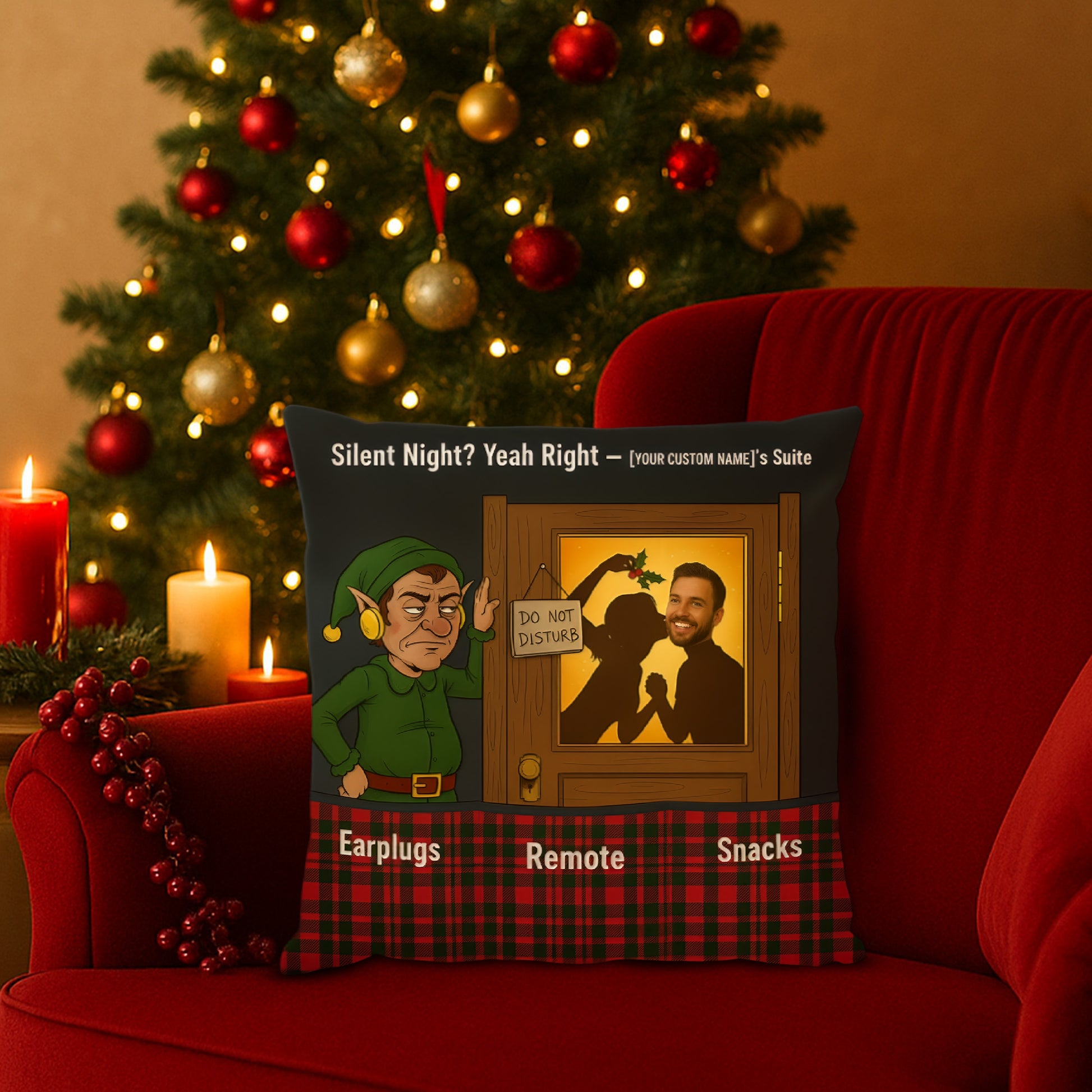 Personalized Double-Sided Christmas Pillow – Custom Face & Name | “Silent Night? Yeah Right” Funny & Faith-Inspired Holiday Gift for Couples | Pillow16