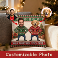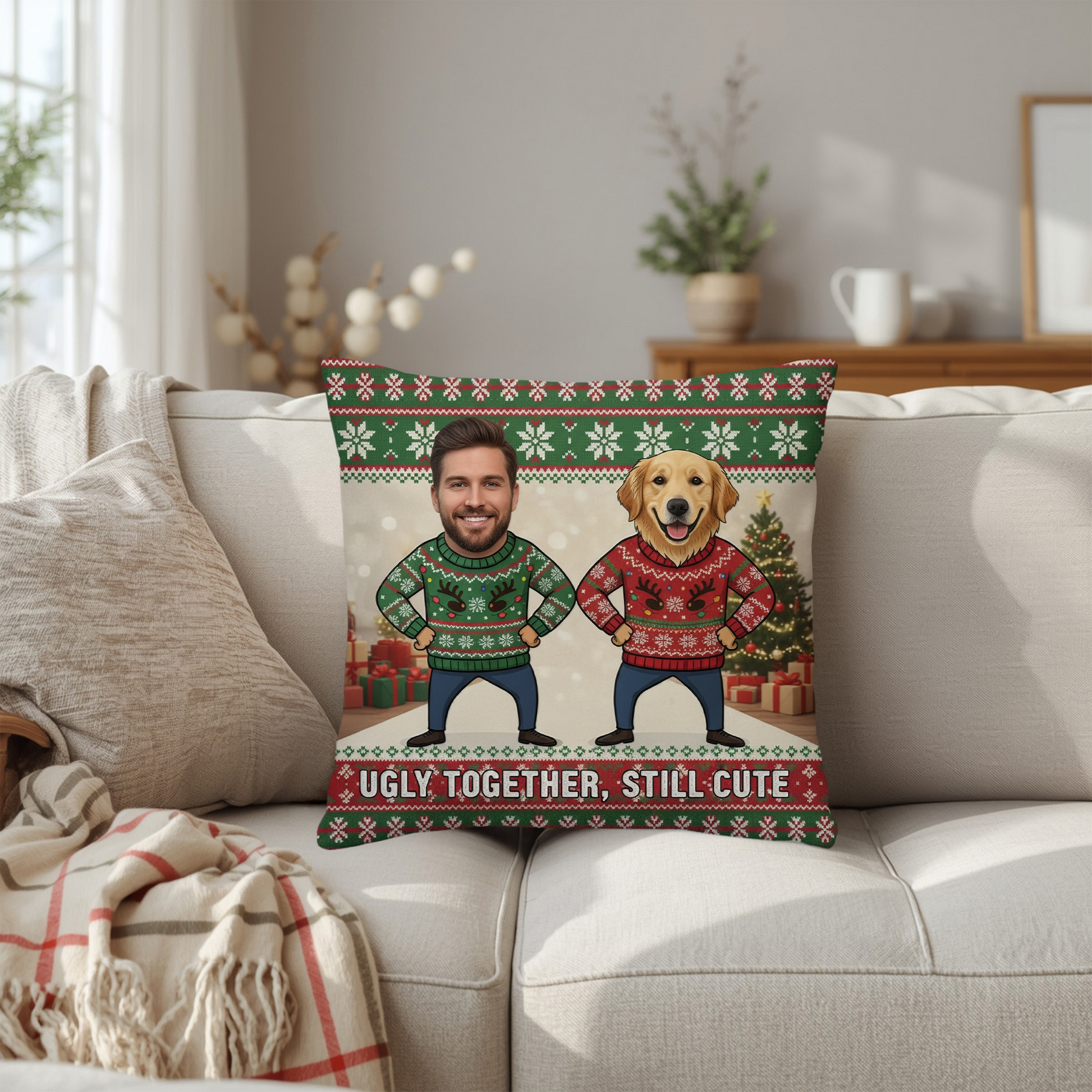 Personalized Christmas Pillow – Custom Pet & Owner Face | Funny Holiday Gift | “Ugly Together, Still Cute” Linen Pillow|Pillow07