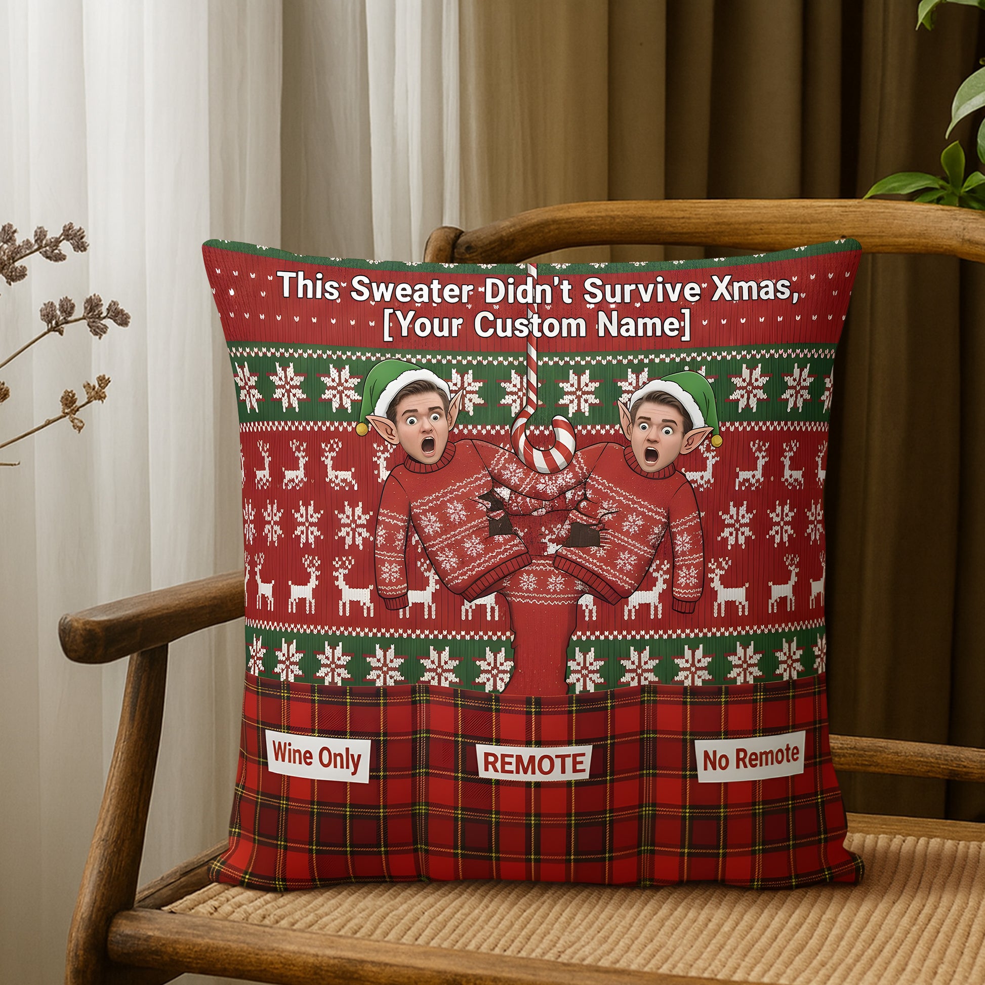 Personalized Funny Christmas Pillow | Custom Face & Name Cushion | Ugly Sweater Xmas Decor | Hilarious Holiday Gift for Friends | Pillow66