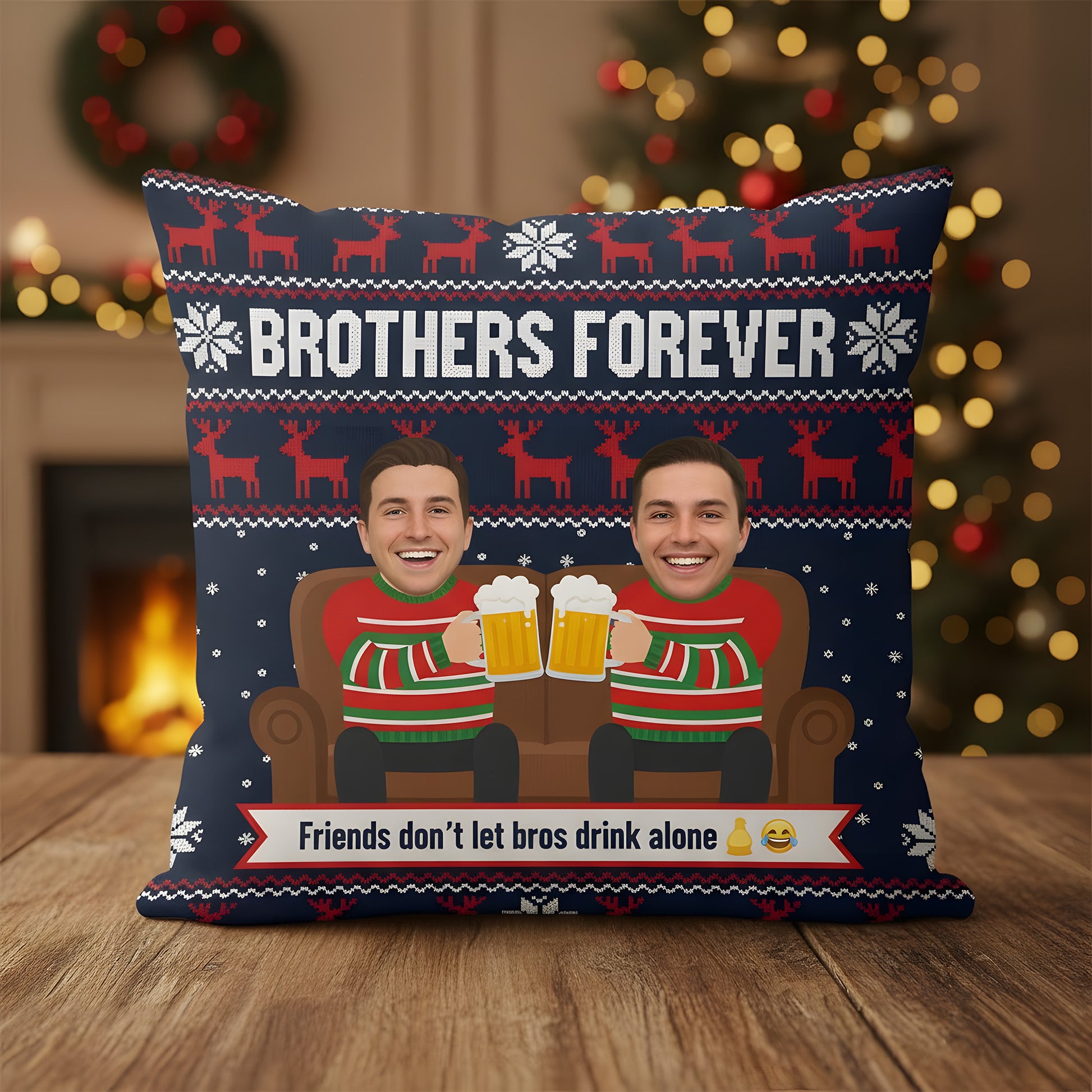 Personalized Brothers Pillow – Custom Face | Funny “Brothers Forever” Gift for Siblings & Best Friends | Christmas Friendship Decor | Pillow19