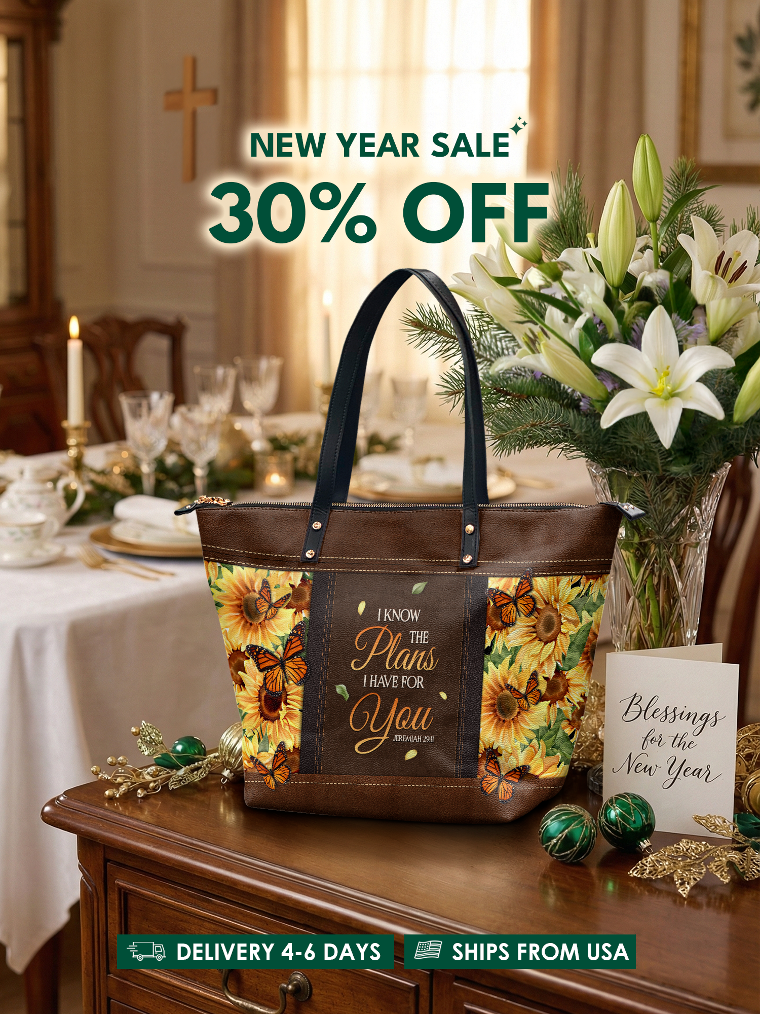 "Renew" - Jeremiah 29:11 Leather Tote Bag