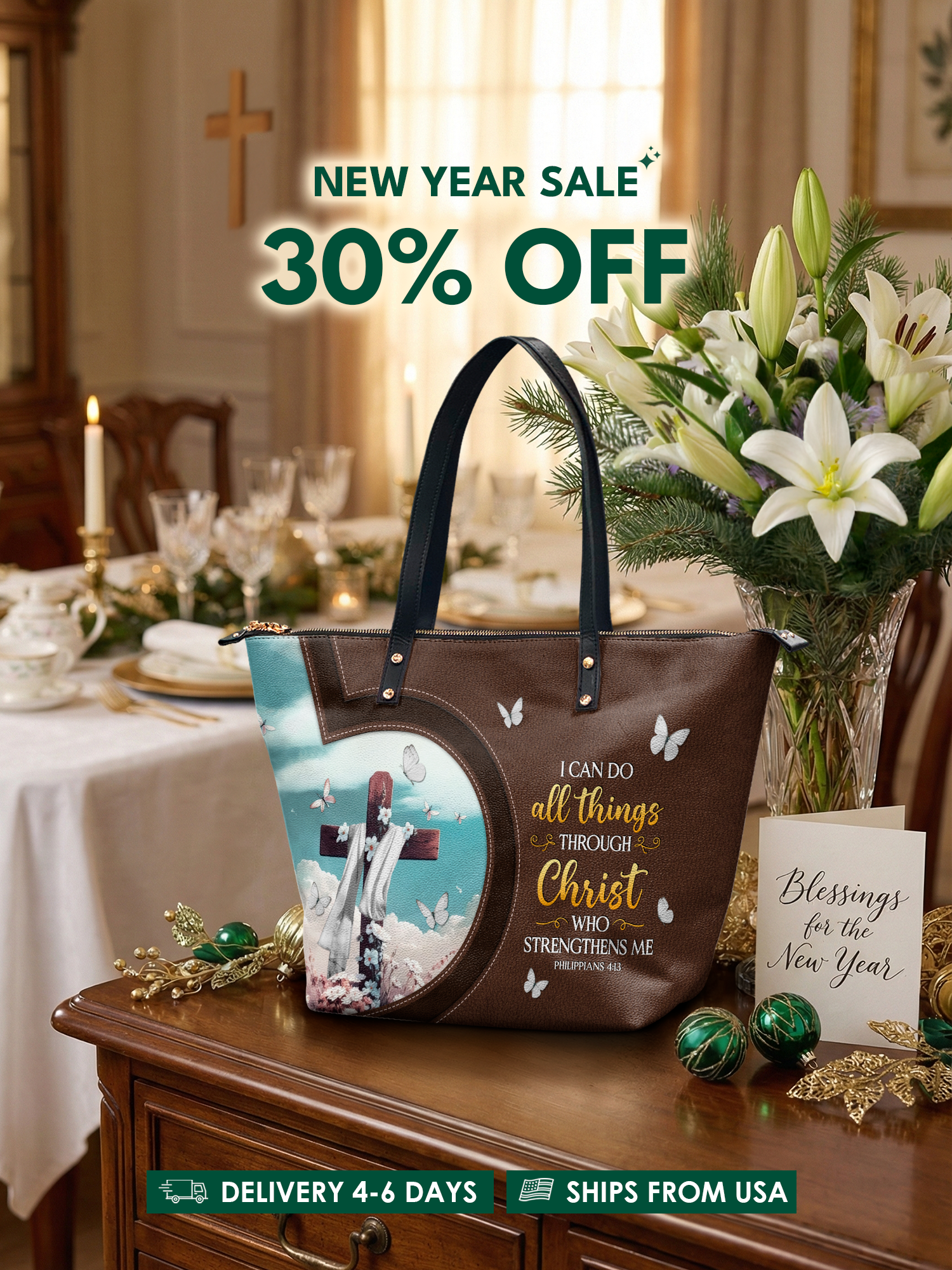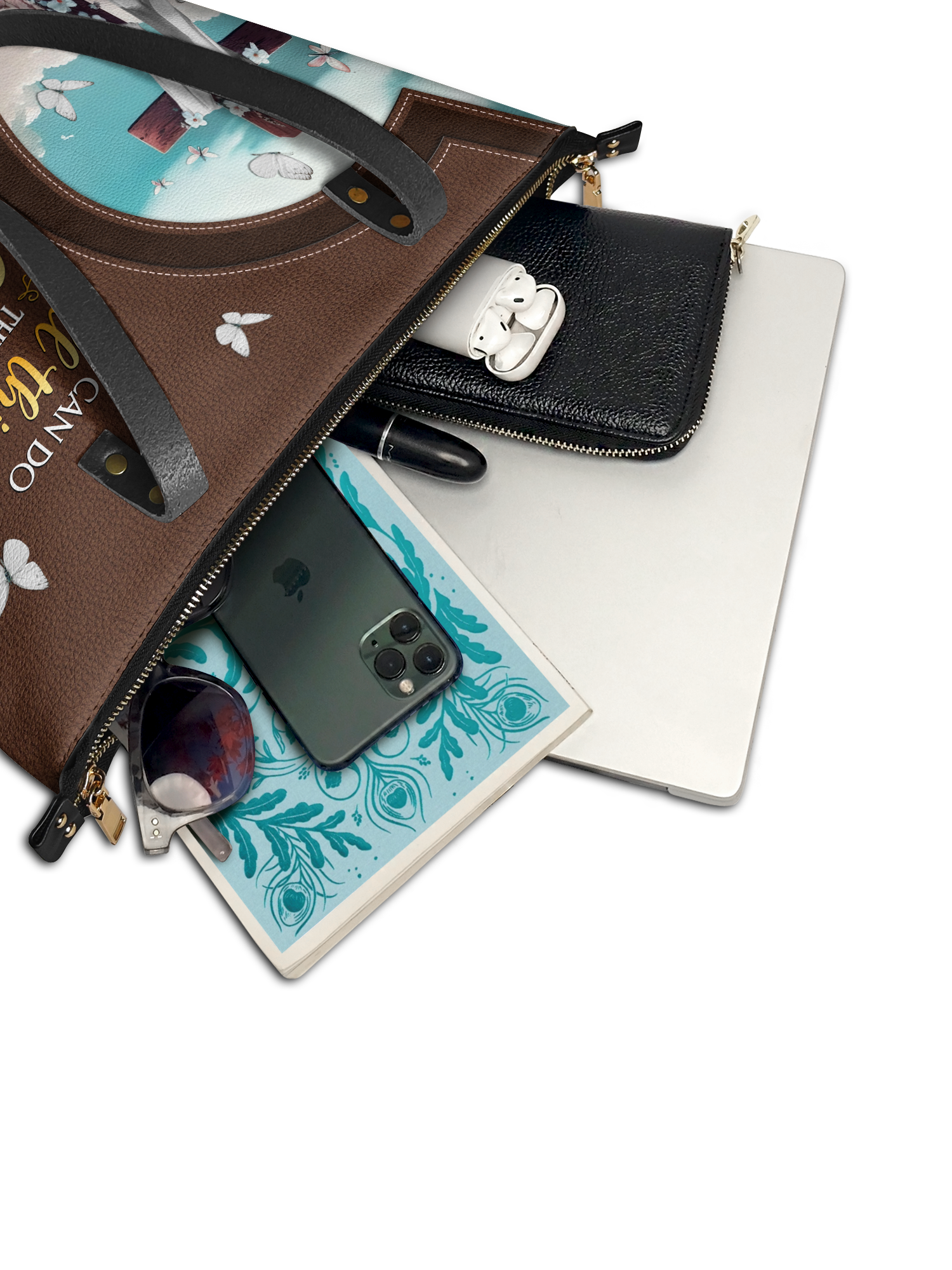 "Rise" - Philippians 4:13 Leather Tote Bag