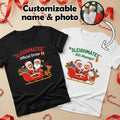 Sleighmates Christmas T-Shirt, Funny Couple Custom Photo Tee, Personalized Santa Sleigh T-shirt, Holiday Gift for Husband Wife Family| Tshirt82