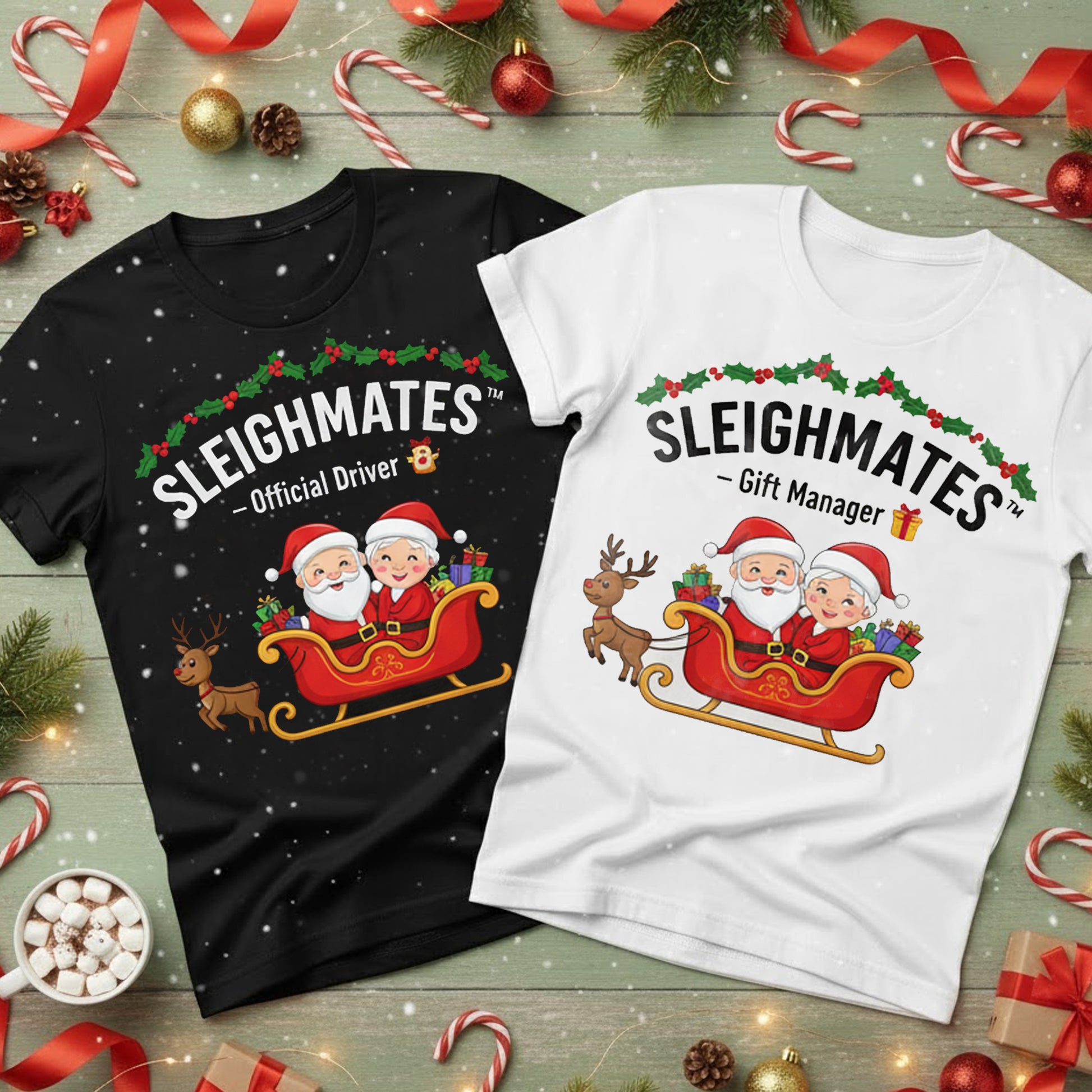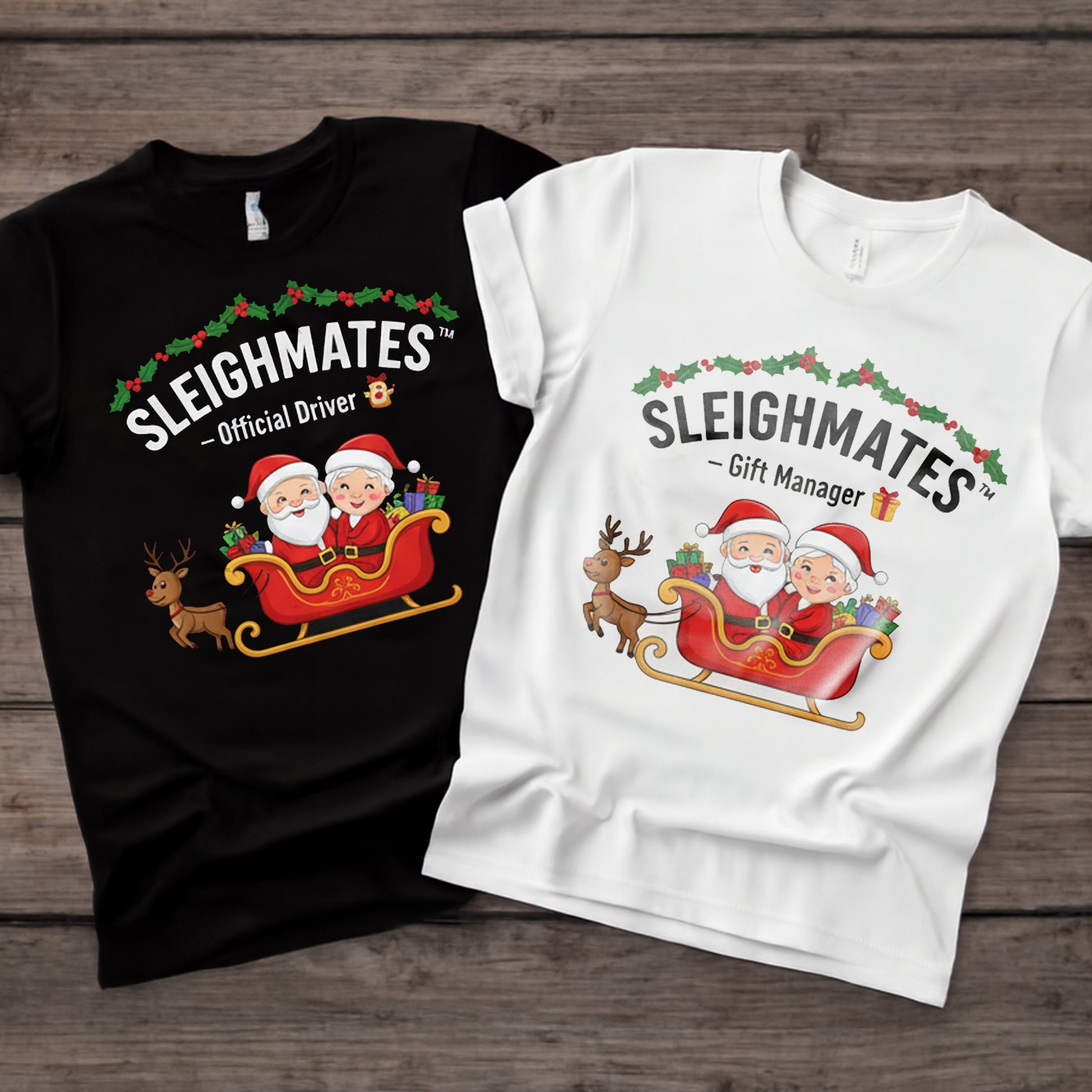 🎅 Don’t wait until the sleigh takes off! Upload your photos now and create your own Sleighmates T-Shirt — the perfect mix of laughter, love, and Christmas cheer! ❤️