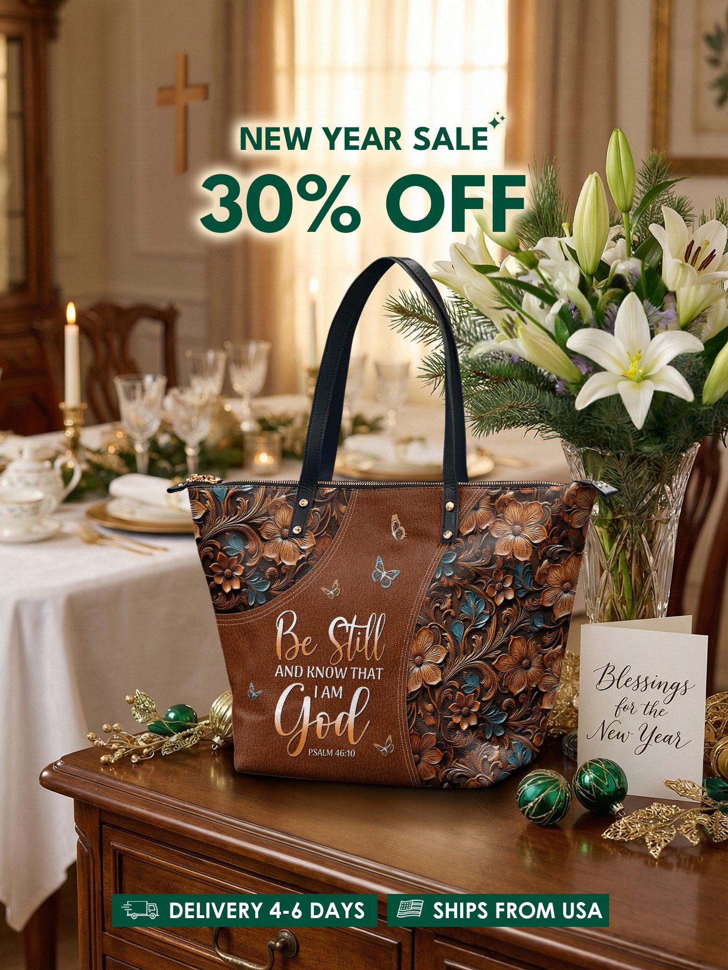 "Stillness" - Psalm 46:10 Leather Tote Bag