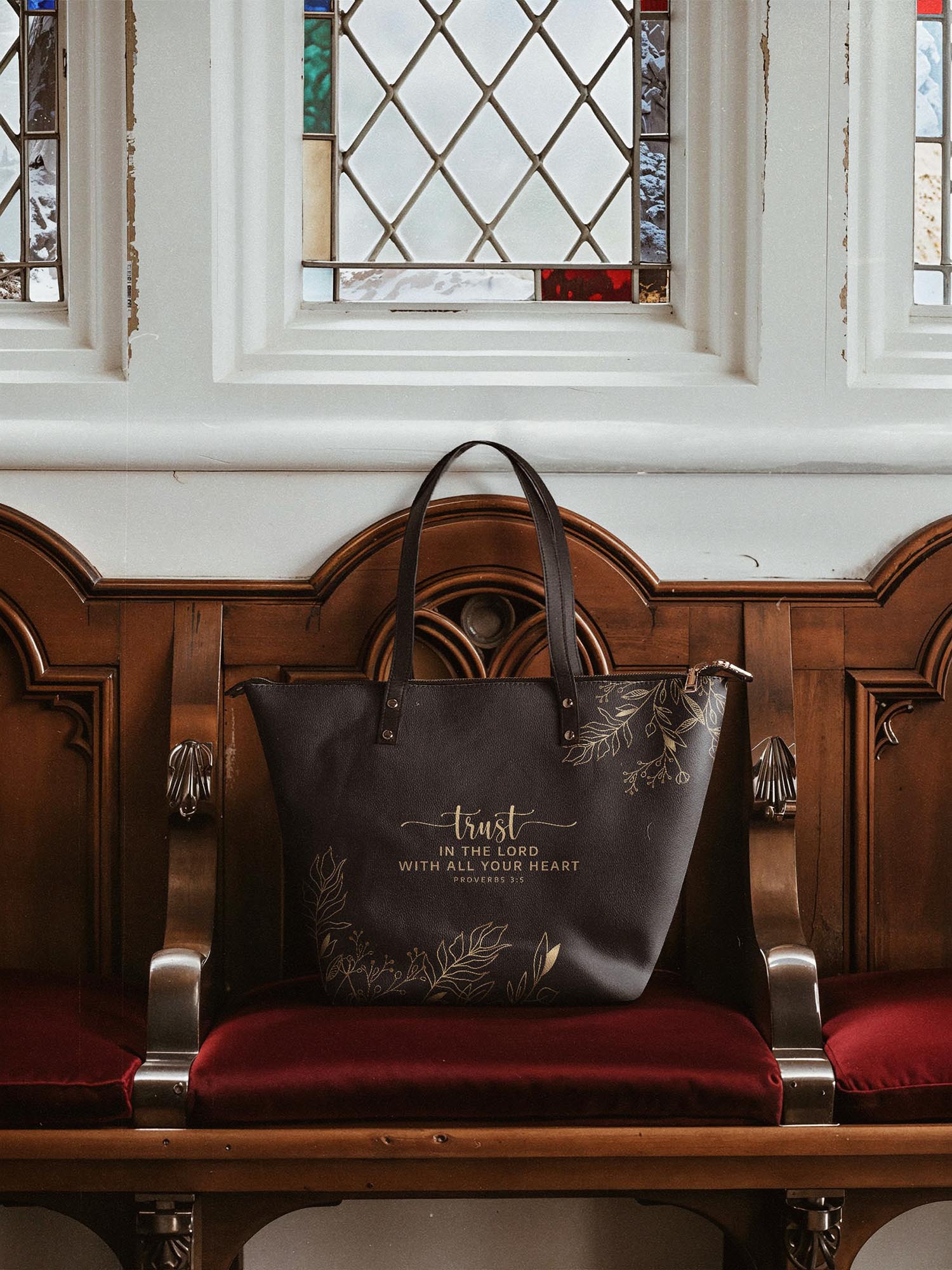"Trust" - Proverbs 3:5 Leather Tote Bag