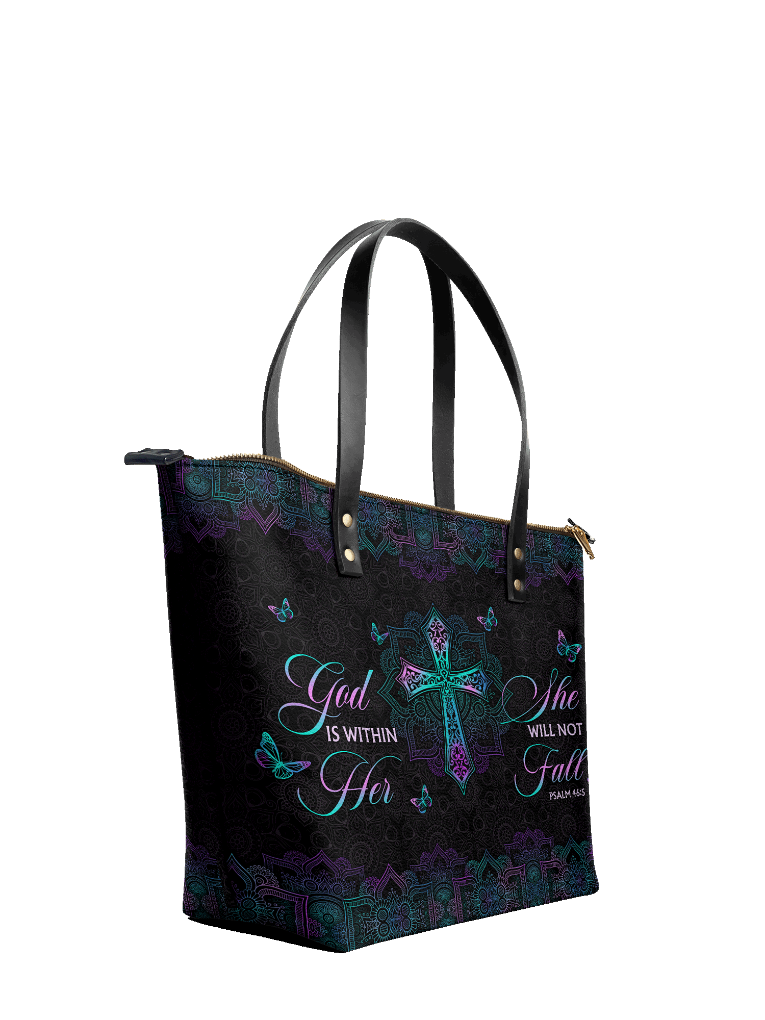 "Unshaken" - Psalm 46:5 Leather Tote Bag