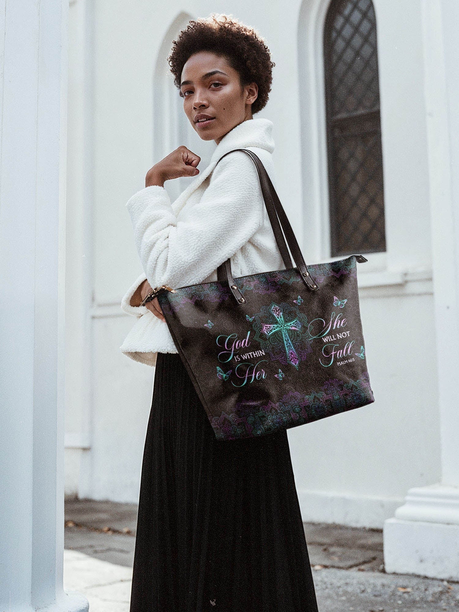 "Unshaken" - Psalm 46:5 Leather Tote Bag